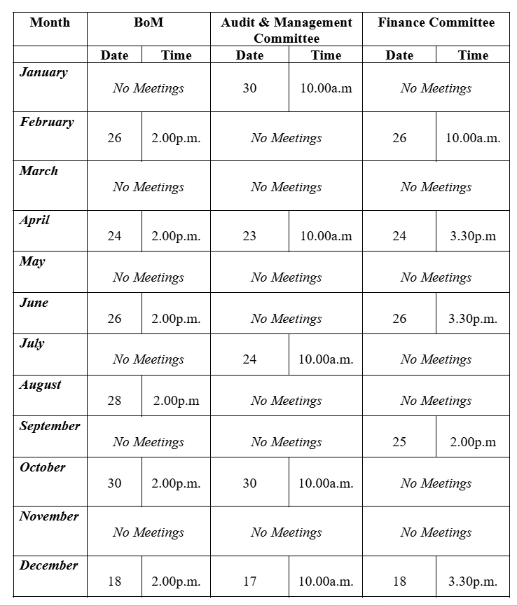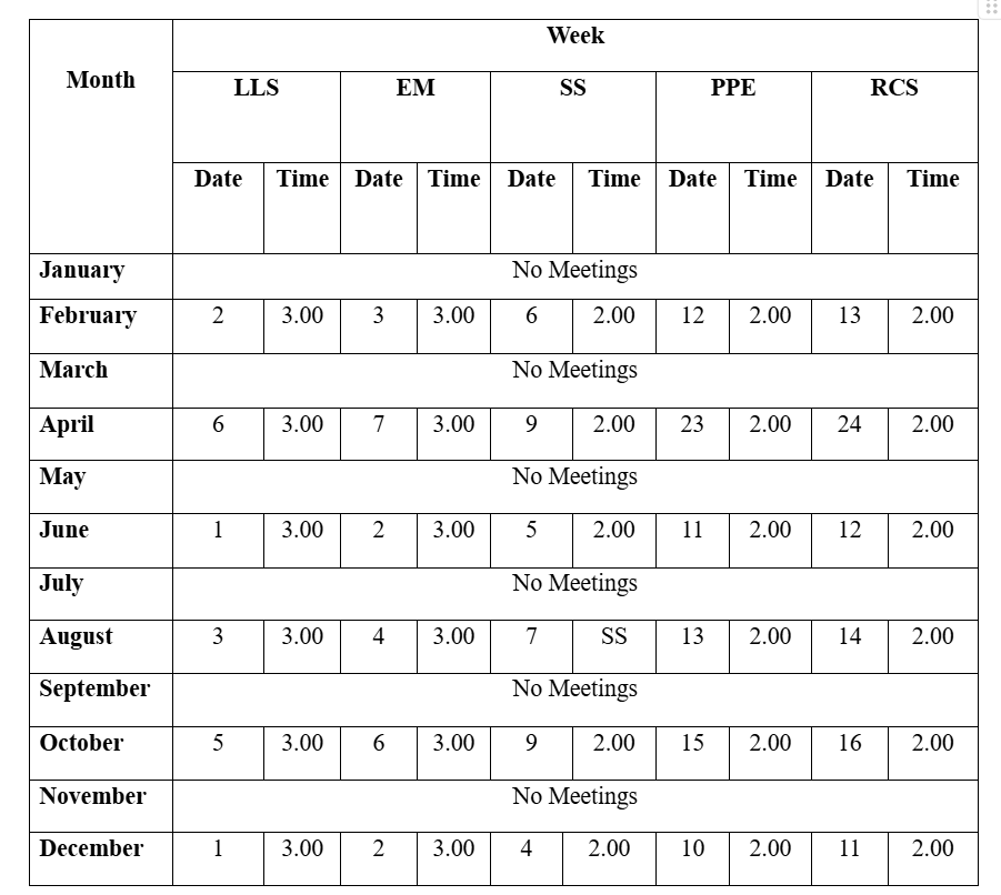 Calendar of Dates for the Meetings of the PGIHS- Year 2026
